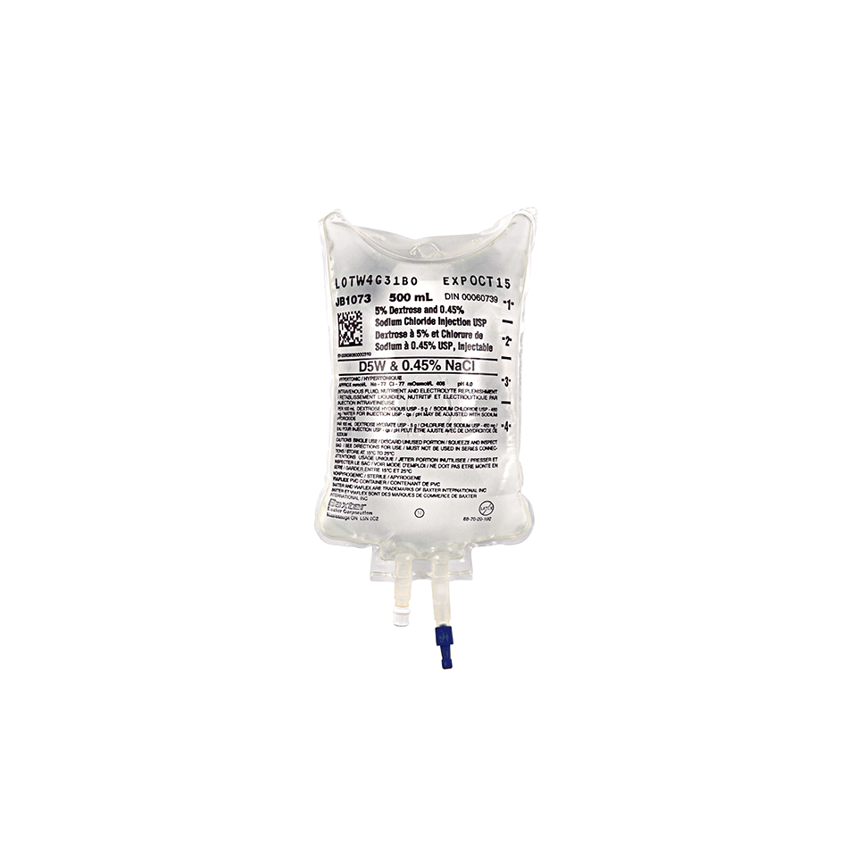 Baxter 5% Dextrose and 0.45% Sodium Chloride Injection Solution 500mL, 24 each/case, JB1073