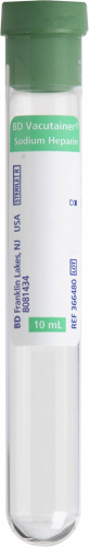 BD Tube Vacutainer Glass; 143USP Units Sodium Heparin 16 X 100mm 10ml Grn 100/Box 10Box/Case 366480