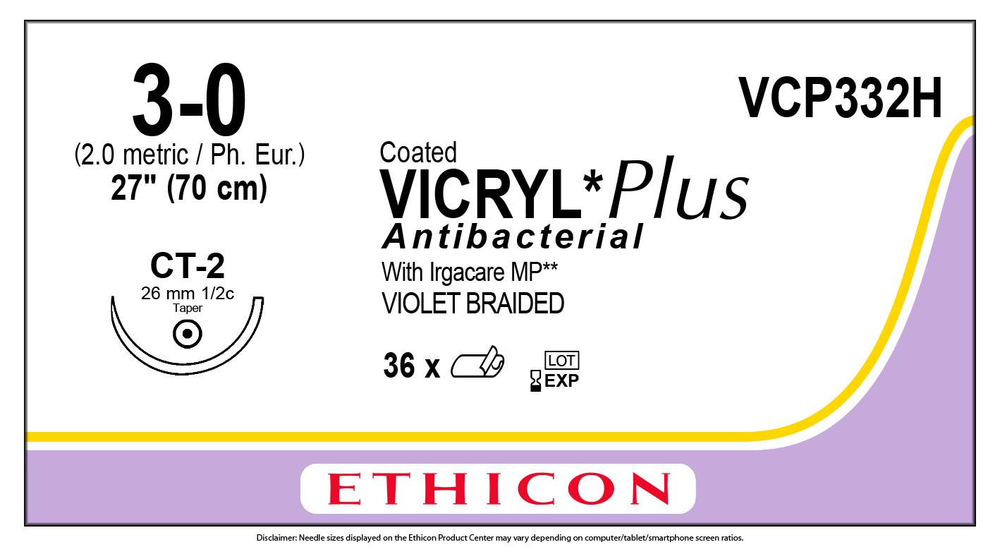 J&J Ethicon COATED VICRYL® Plus Antibacterial (polyglactin 910) Suture 36 each/box VCP332H 3-0 COATED VICRYL PLUS VIOLET 1X27" CT-2 Brand:... Read more