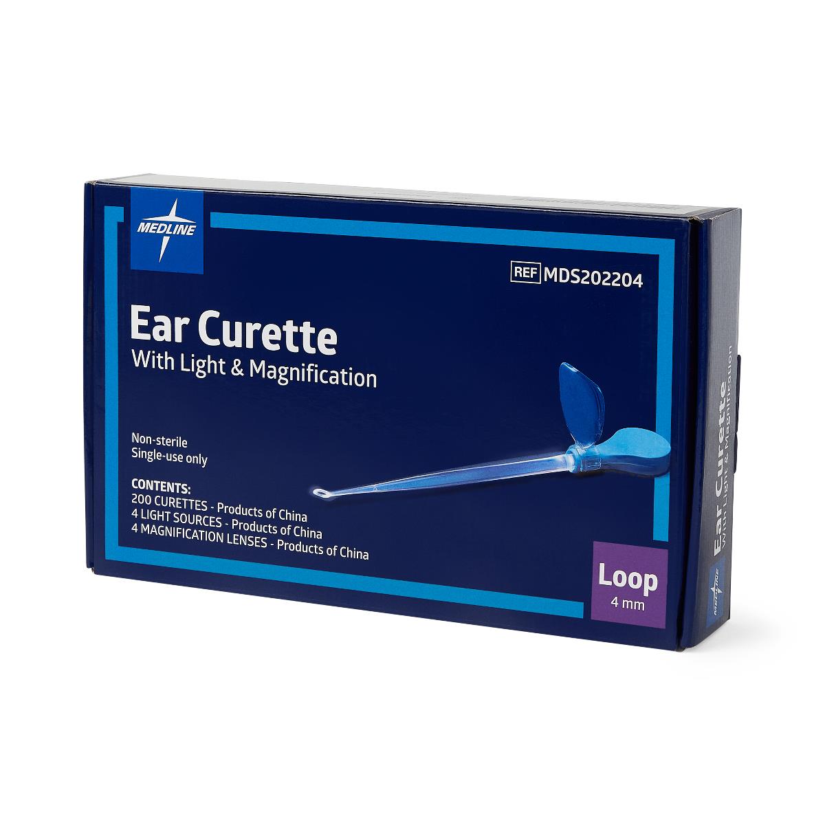 Medline Looped Ear Curettes with Light and Magnification, 4 mm, Clinic, 200/BX, MDS202204 Non-sterile Single use Provides light and magnification... Read more