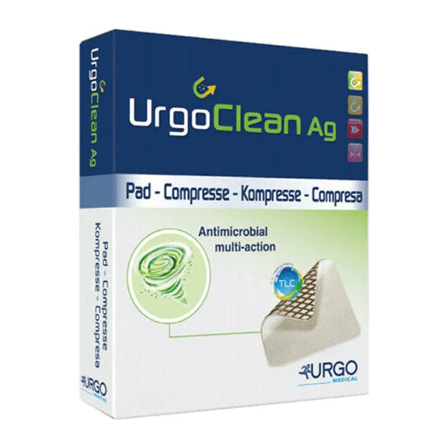 - UrgoClean Ag is a wound dressing that supports the continuous debridement of slough and fights biofilm. It consists of a sterile nonwoven pad coated with silver containing soft-adherent lipido-colloid layer on the dressing/wound interface. In contact with body fluids (exudates, slough) it forms a gel creating a moist environment, which allows for an easy removal of the dressing with little or no damage to healing tissues, leading to no or minor pain or trauma to the wound.